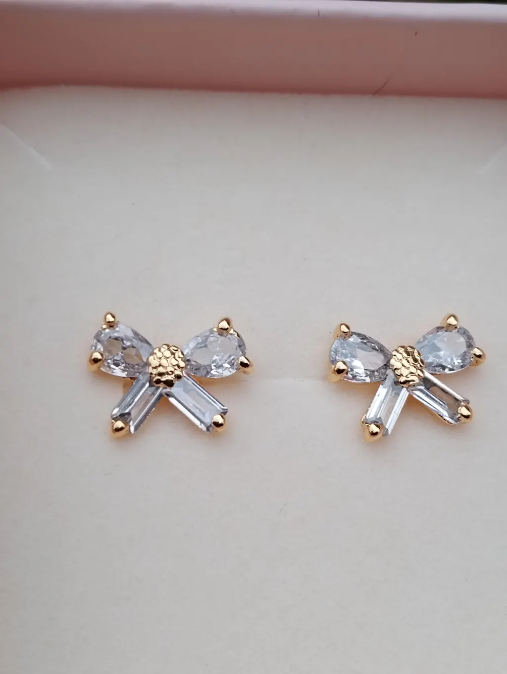 A delicate nod to timeless femininity. These Bow Stud Earrings sparkle with teardrop and rectangular cubic zirconia crystals that catch the light beautifully, adding a touch of soft glamour to any look.